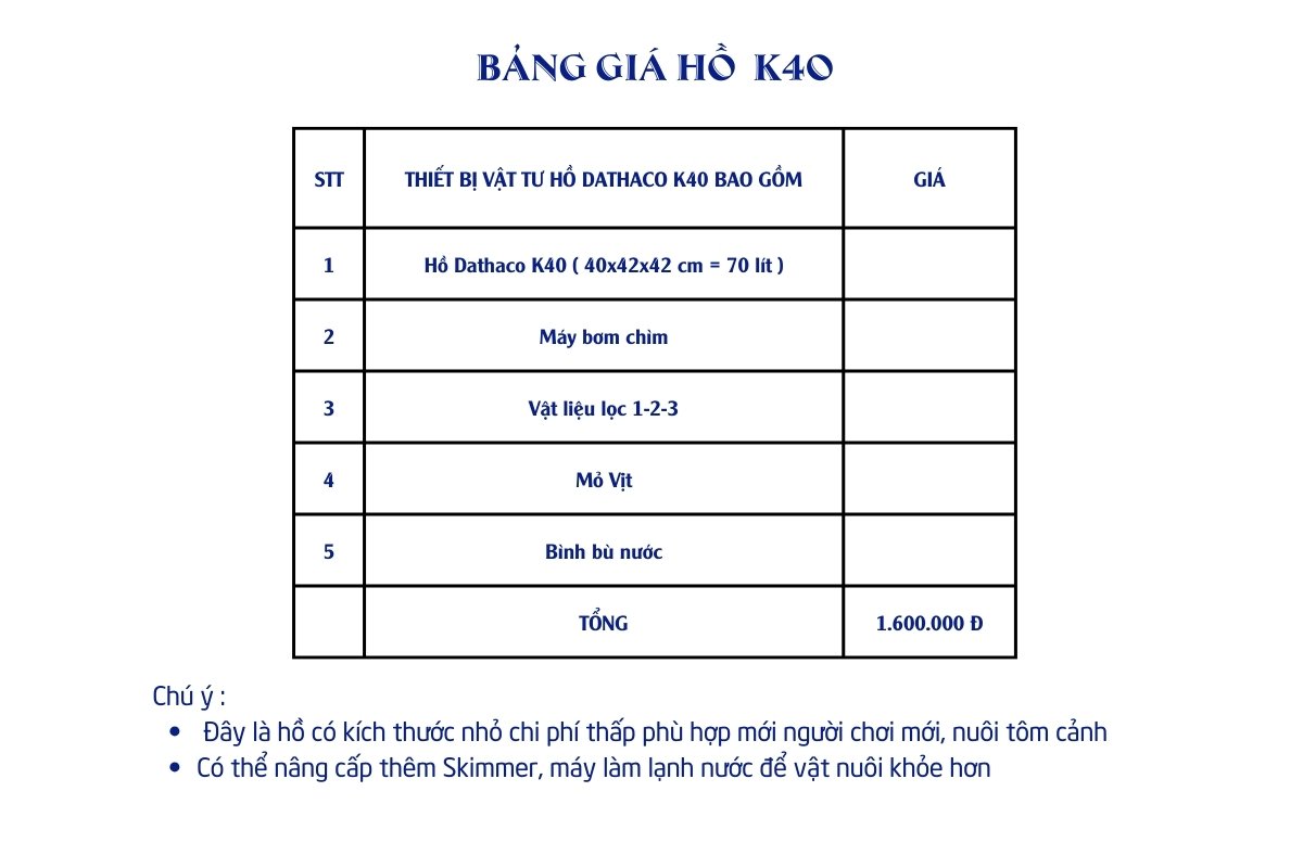 Bộ Hồ Dathaco K40 lọc vách